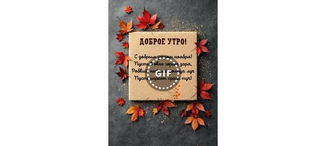 Анимированная открытка "Доброе утро! С добрым утром ноября! Пусть в окне горит заря, Робкий, нежный солнца луч пусть играет"