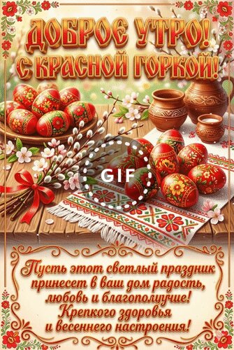 Анимированная открытка "Доброе утро! С Красной горкой! Пусть этот светлый праздник принесет в ваш дом радость, любовь и"