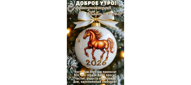 Открытка "ДОБРОЕ УТРО! С НАСТУПАЮЩИМ НОВЫМ ГОДОМ! ПУСТЬ ВАМ ЭТОТ ГОД ПРИНОСИТ ВСЕ, ЧТО СЕРДЦЕ ВАШЕ ПРОСИТ: СЧА"