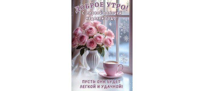 Открытка "ДОБРОЕ УТРО! С ПЕРВОЙ РАБОЧЕЙ НЕДЕЛЕЙ ГОДА! ПУСТЬ ОНА БУДЕТ ЛЕГКОЙ И УДАЧНОЙ!"