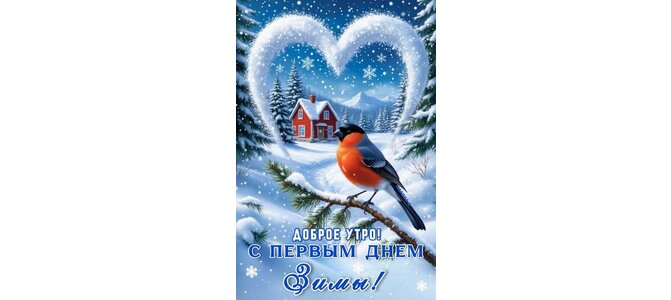 Открытка "ДОБРОЕ УТРО! С ПЕРВЫМ ДНЕМ ЗИМЫ!"