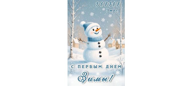 Открытка "ДОБРОЕ УТРО! С ПЕРВЫМ ДНЕМ ЗИМЫ!"