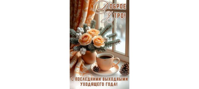 Открытка "ДОБРОЕ УТРО! С ПОСЛЕДНИМИ ВЫХОДНЫМИ УХОДЯЩЕГО ГОДА!"