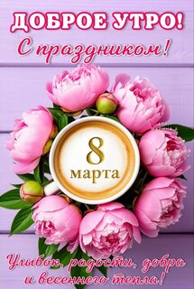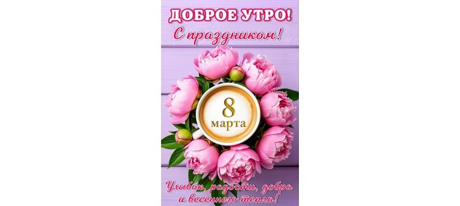 Открытка "ДОБРОЕ УТРО! С ПРАЗДНИКОМ! 8 МАРТА. УЛЫБОК, РАДОСТИ, ДОБРА И ВЕСЕННЕГО ТЕПЛА!"