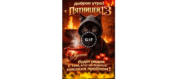 Анимированная открытка "Доброе утро! с Пятницей, 13 Удача будет рядом с тем, кто не боится никаких проблем!"