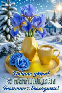 Открытка "Доброе утро! С пятницей! Отличных выходных!"