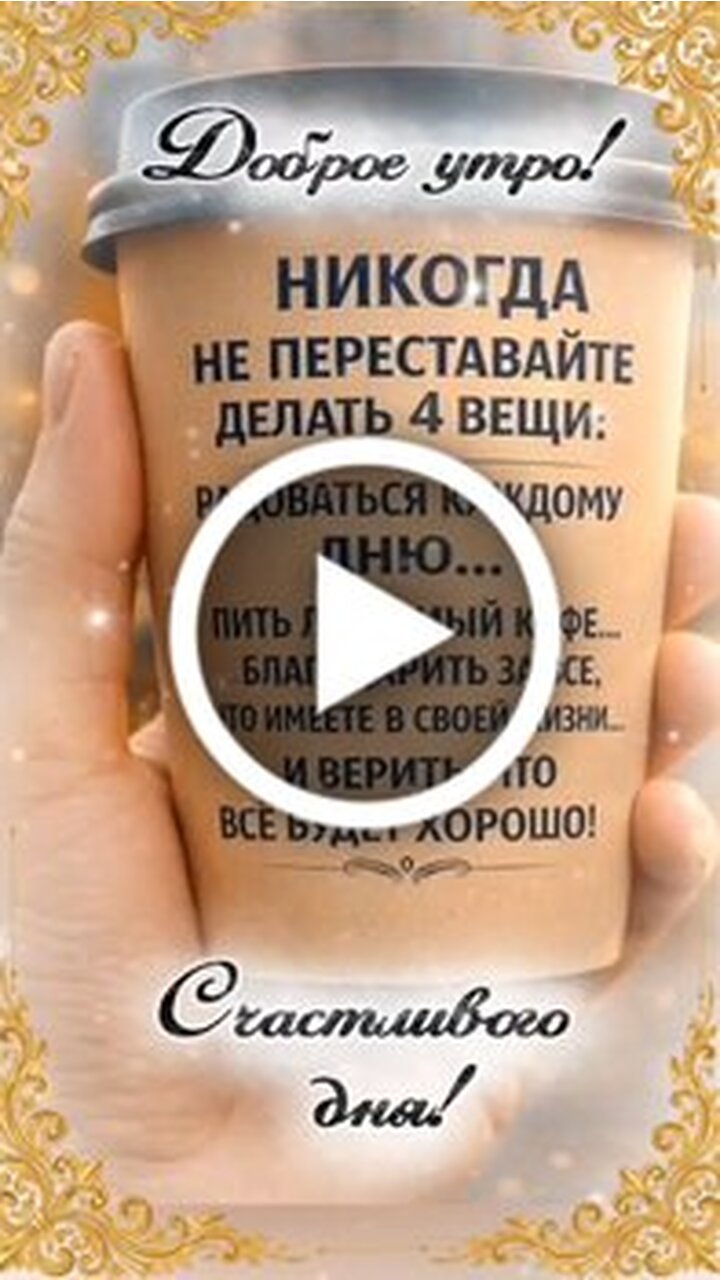 Доброе утро! Счастливого дня! Никогда не переставайте делать 4 вещи: радоваться каждому дню... пить любимый кофе... благодарить за всё, что имеете в своей жизни... и верить, что всё будет хорошо!