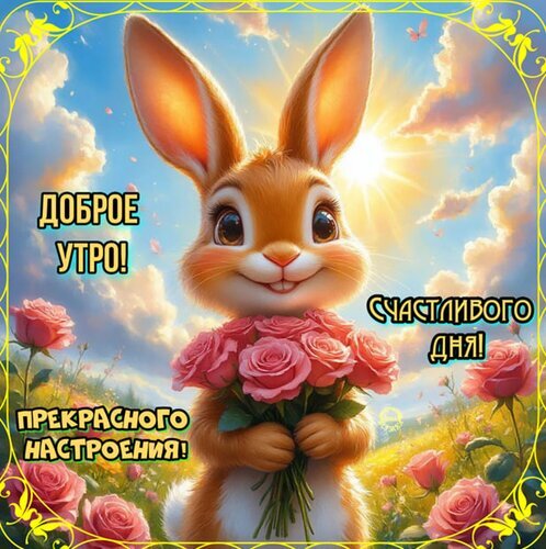 Теги:доброе утро, утро доброе, счастливого дня, прекрасного настроения, утро, доброе, розы, букет роз, солнце, заяц, зайчик, зайчонок, цветы