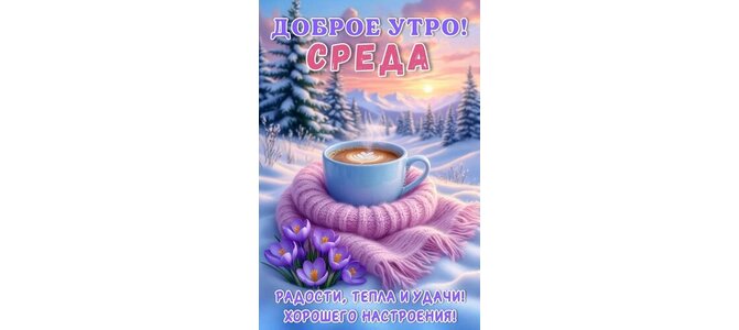 Открытка "ДОБРОЕ УТРО! СРЕДА! РАДОСТИ, ТЕПЛА И УДАЧИ! ХОРОШЕГО НАСТРОЕНИЯ!"