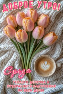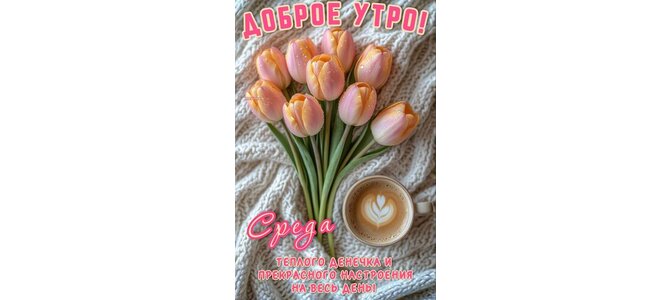 Открытка "ДОБРОЕ УТРО! СРЕДА. ТЕПЛОГО ДЕНЕЧКА И ПРЕКРАСНОГО НАСТРОЕНИЯ НА ВЕСЬ ДЕНЬ!"