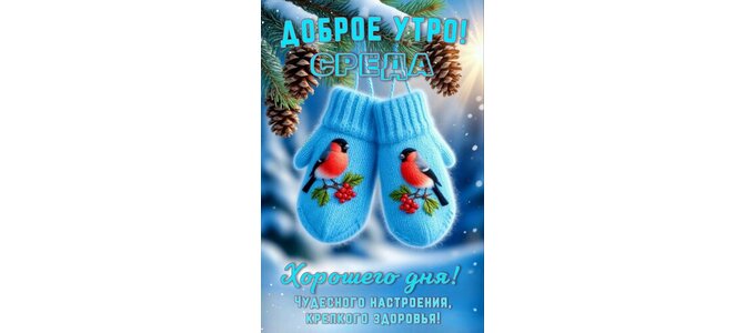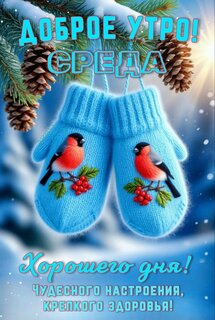 Теги:зима, доброе утро, дни недели, среда, варежки, снегири, морозное утро, крепкое здоровье, настроение