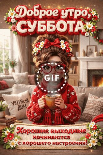 Анимированная открытка "Доброе утро, Суббота. Хорошие выходные начинаются с хорошего настроения!"