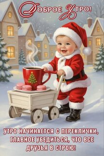 Открытка "ДОБРОЕ УТРО! УТРО НАЧИНАЕТСЯ С ПЕРЕКЛИЧКИ, ГЛАВНОЕ УБЕДИТЬСЯ, ЧТО ВСЕ ДРУЗЬЯ ВСЕ ДРУЗЬЯ В СТРОЮ"