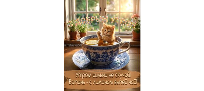 Открытка "Доброе утро. Утром сильно не скучай. Встань, с лимоном выпей чай."