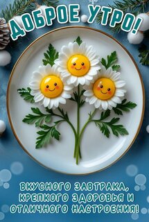 Открытка "ДОБРОЕ УТРО! ВКУСНОГО ЗАВТРАКА, КРЕПКОГО ЗДОРОВЬЯ И ОТЛИЧНОГО НАСТРОЕНИЯ!"