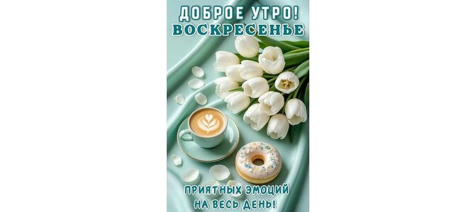 Открытка "ДОБРОЕ УТРО! ВОСКРЕСЕНЬЕ. ПРИЯТНЫХ ЭМОЦИЙ НА ВЕСЬ ДЕНЬ!"