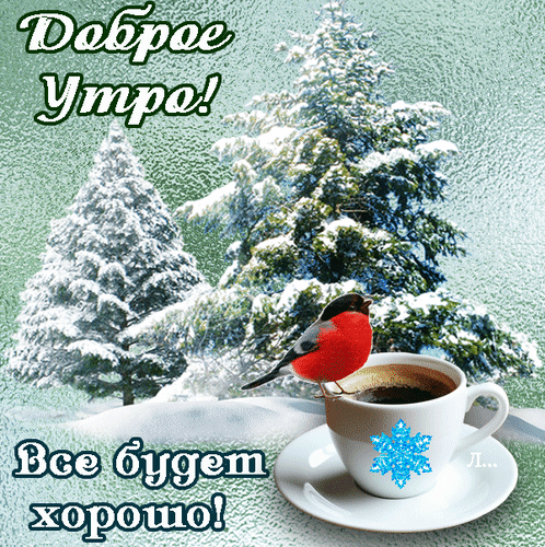 Теги:доброе утро, утро, зима, анимация снегирь, чашка кофе, елка, снежинка