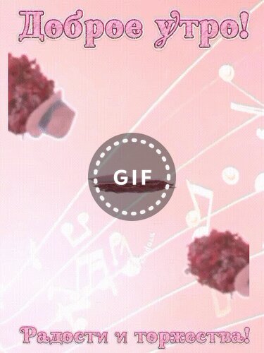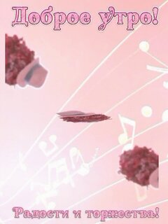 Красивая поздравительная открытка с надписью «Доброе утро! Радости и торжества!». Изображение выполнено в нежных розовых тонах с элементами музыкальных нот и декоративными цветочными композициями. Идеально подходит для отправки в мессенджерах (WhatsApp, Viber) или социальных сетях, чтобы пожелать близким, друзьям и коллегам прекрасного начала дня, вдохновения и позитивного настроения. Музыкальная тематика и мягкая цветовая гамма создают атмосферу легкости и праздника.