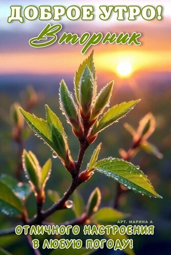 Открытка "ДОБРОЕ УТРО! ВТОРНИК. ОТЛИЧНОГО НАСТРОЕНИЯ В ЛЮБУЮ ПОГОДУ!"