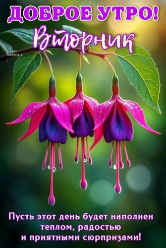Открытка "ДОБРОЕ УТРО! ВТОРНИК. ПУСТЬ ЭТОТ ДЕНЬ БУДЕТ НАПОЛНЕН ТЕПЛОМ, РАДОСТЬЮ И ПРИЯТНЫМИ СЮРПРИЗАМИ!"