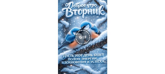 Анимированная открытка "Доброе утро. Вторник. Пусть этот день будет полон энергии, вдохновения и успеха."