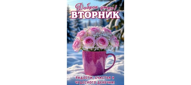 Открытка "ДОБРОЕ УТРО! ВТОРНИК. РАДОСТИ, СЧАСТЬЯ И ЧУДЕСНОГО ДЕНЕЧКА!"