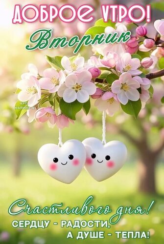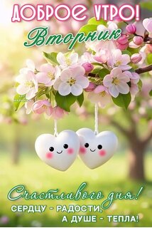 Открытка "ДОБРОЕ УТРО! ВТОРНИК. СЧАСТЛИВОГО ДНЯ! СЕРДЦУ - РАДОСТИ, А ДУШЕ - ТЕПЛА!"