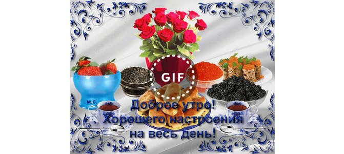 Анимированная открытка "Доброе утро! Хорошего настроения на весь день!, (М. С.)"