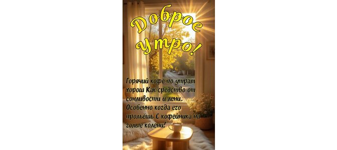 Открытка "Доброе утро. Хороший кофе по утрам хорош как средство"