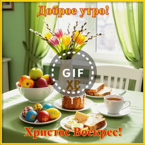 Анимированная открытка "Доброе утро! Христос воскрес!, (М. С.)"