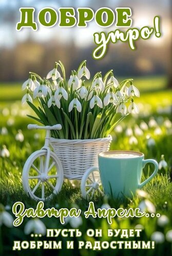 Открытка "ДОБРОЕ УТРО! ЗАВТРА АПРЕЛЬ... ПУСТЬ ОН БУДЕТ ДОБРЫМ И РАДОСТНЫМ!"