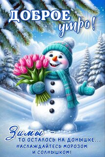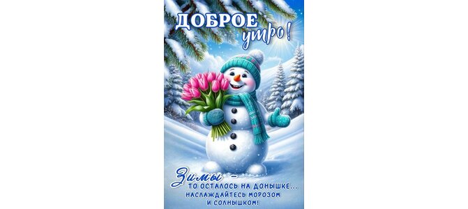 Открытка "ДОБРОЕ УТРО! ЗИМЫ - ТО ОСТАЛОСЬ НА ДОНЫШКЕ... НАСЛАЖДАЙТЕСЬ МОРОЗОМ И СОЛНЫШКОМ!"