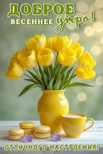 Открытка "ДОБРОЕ ВЕСЕННЕЕ УТРО! ОТЛИЧНОГО НАСТРОЕНИЯ!"