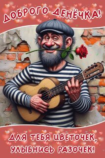Анимированная открытка "Доброго денёчка! Для тебя цветочек, улыбнись разочек!"
