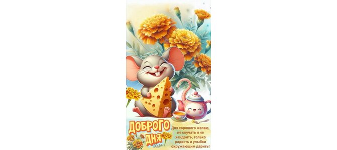 Доброго дня. Дня хорошего желаю, не скучать и не хандрить, только радость и улыбки окружающим дарить!