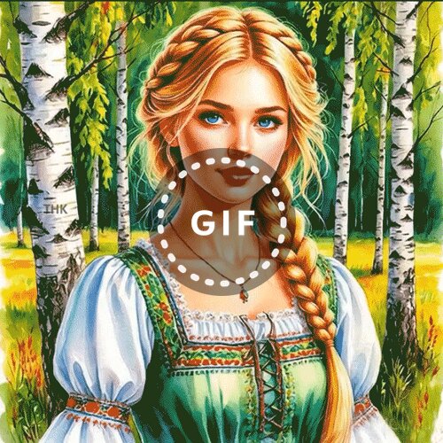 Цифровая иллюстрация в стиле фэнтези, изображающая прекрасную девушку со светлыми волосами, заплетенными в длинную косу. Она одета в традиционное средневековое платье зеленого цвета с белыми рукавами и кружевной отделкой. Девушка находится на фоне живописного березового леса в солнечный день. Картина выполнена в ярких, насыщенных тонах, передающих атмосферу сказки и волшебства. Идеально подходит для использования в качестве арта, обоев или вдохновения для любителей фэнтези-тематики.