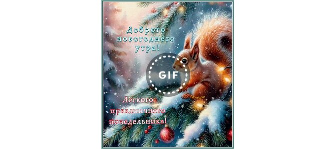 Анимированная открытка "Доброго новогоднего утра! Лёгкого праздничного понедельника!"