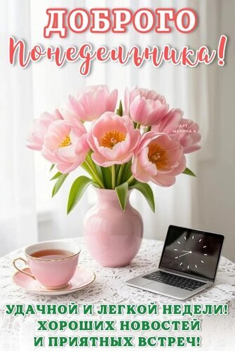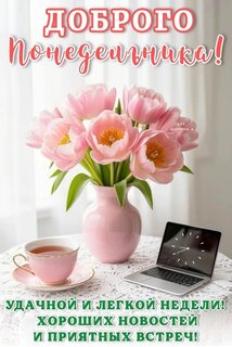 Открытка "ДОБРОГО ПОНЕДЕЛЬНИКА! УДАЧНОЙ И ЛЕГКОЙ НЕДЕЛИ! ХОРОШИХ НОВОСТЕЙ И ПРИЯТНЫХ ВСТРЕЧ!"