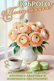 Открытка "ДОБРОГО ПОНЕДЕЛЬНИКА! ЖЕЛАЮ ЛЕГКОЙ НЕДЕЛИ, КРЕПКОГО ЗДОРОВЬЯ И ОТЛИЧНОГО НАСТРОЕНИЯ!"