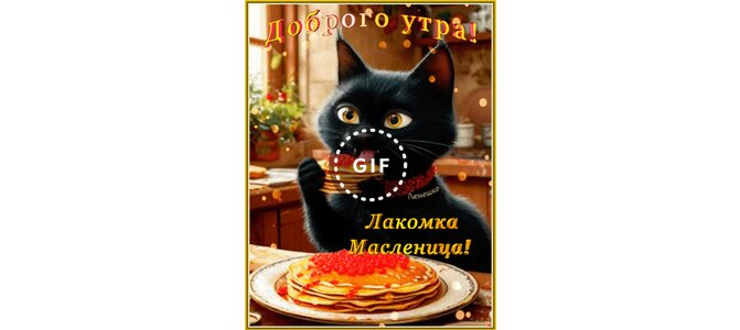 Анимированная открытка "Доброго утра! Доброго дня! Лакомка Масленица!"