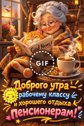 Анимированная открытка "Доброго утра - рабочему классу и хорошего отдыха пенсионерам!"