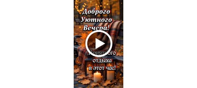 Видеооткрытка "Доброго уютного вечера! Приятного отдыха в этот час! Пусть сегодня вечер теплотой укроет! Проблемы"