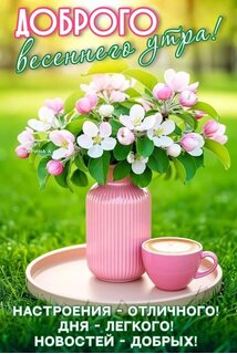 Открытка "ДОБРОГО ВЕСЕННЕГО УТРА! НАСТРОЕНИЯ - ОТЛИЧНОГО! ДНЯ - ЛЕГКОГО! НОВОСТЕЙ - ДОБРЫХ!"