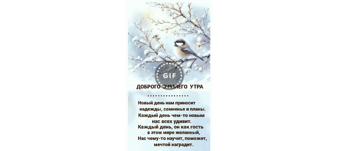 Анимированная открытка "Доброго зимнего утра. Новый день нам приносит надежды, сомненья и планы. Каждый день чем-то новым"
