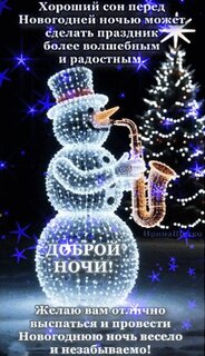 Хороший сон перед Новогодней ночью может сделать праздник более волшебным и радостным доброй ночи! Желаю вам отлично выспаться и провести Новогоднюю ночь весело и незабываемо!