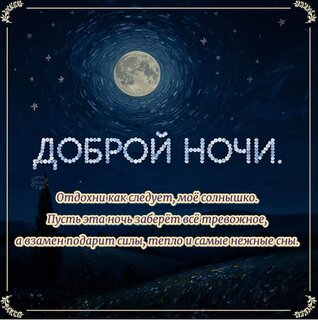 Отдохни как следует, моё солнышко. Пусть эта ночь заберёт всё тревожное, а взамен подарит силы, тепло и самые нежные сны.