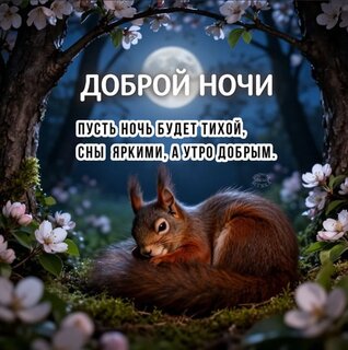 Теги:доброй, спокойной, ночи, ночь, открытка с пожеланиями, пожелания, милая, бсгжка, белка, бельчонок, луна