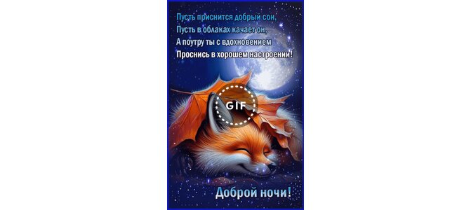 Анимированная открытка "Доброй ночи! Пусть приснится добрый сон, пусть в облаках качает он, а по утру ты с вдохновением прос"