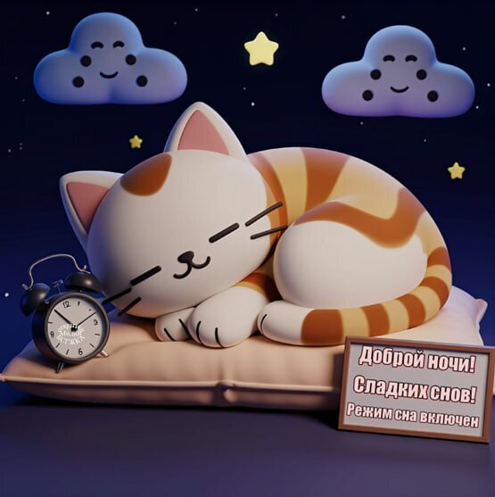 Открытка "Доброй ночи! Сладких снов! Режим сна включен"