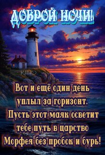 Доброй ночи. Вот и ещё один день уплыл за горизонт... Пусть этот маяк осветит тебе путь в царство Морфея без пробок и бурь!